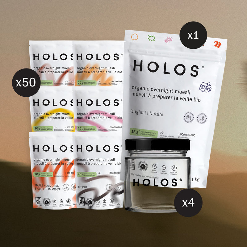 Démarrez votre journée avec nos délicieux déjeuners crémeux et croquants de grains entiers bio avec 20g de protéines, des probiotiques, fruits déshydratés, superaliments et des vitamines et minéraux essentiels.