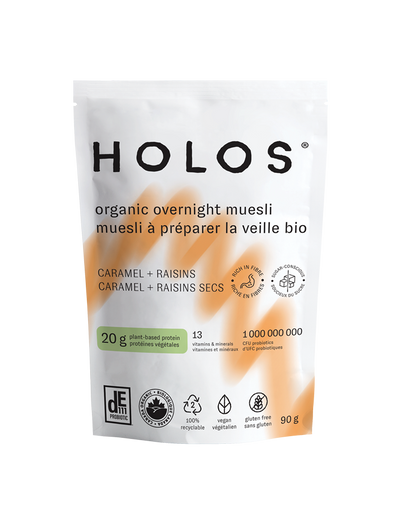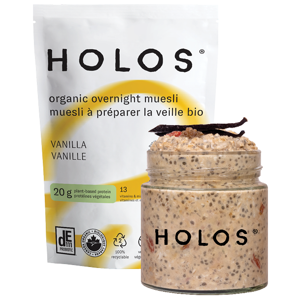 Gluten-free rolled oats*, Chia seeds*, Sprouted brown rice protein powder*, Sunflower seeds*, Dried Goji berries*, Dried white mulberries*, Maple sugar*, Natural Flavour*, Himalayan pink salt, Guar gum*, Lucuma powder*, Ground Vanilla bean*, Bacterial culture (Bacillus subtilis DE111®)